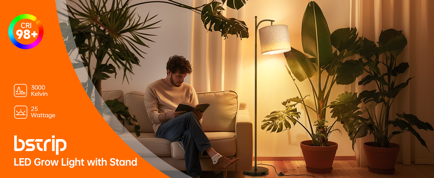 3000K warm white light creates cozy ambiance while supporting plant growth. Serves as both plant light and reading lamp for living rooms, bedrooms, and offices.
