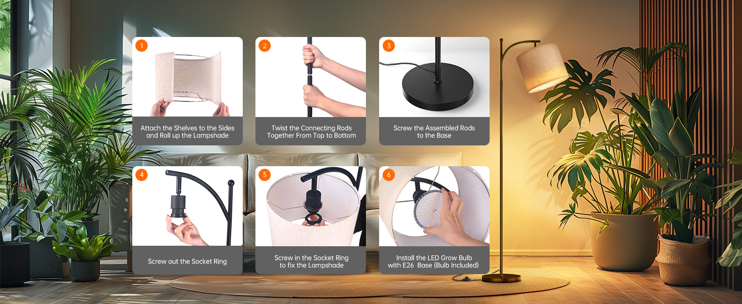 Features 120° rotatable bulb head for precise light positioning. Perfect for tall plants, seedlings, and various potted plants with customizable lighting angles.