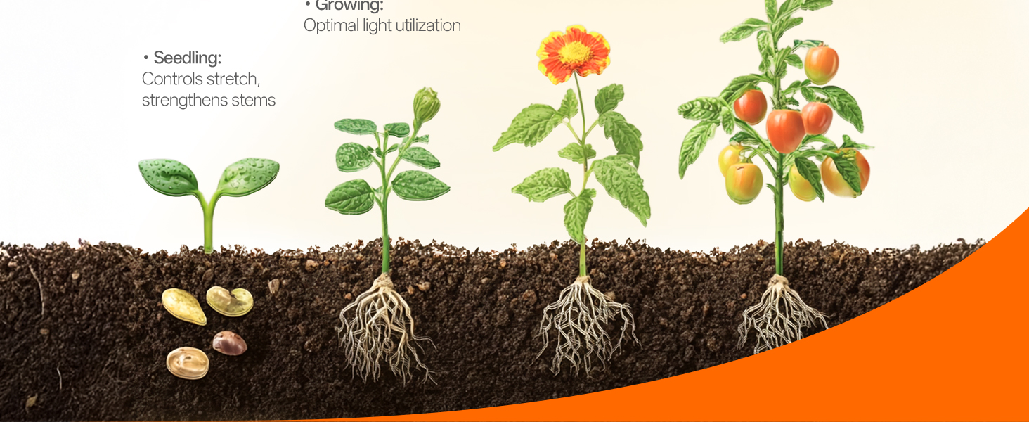 Achieve perfect lighting positions for plants of all sizes with the 59-inch extendable stand and four 360-degree flexible goosenecks. Customize each light head to deliver deep canopy penetration for tall plants, bloom-optimized intensity for flowering varieties, or gentle illumination for delicate seedlings. This versatile system adapts to your evolving indoor garden, ensuring optimal light distribution as your plants grow and change.