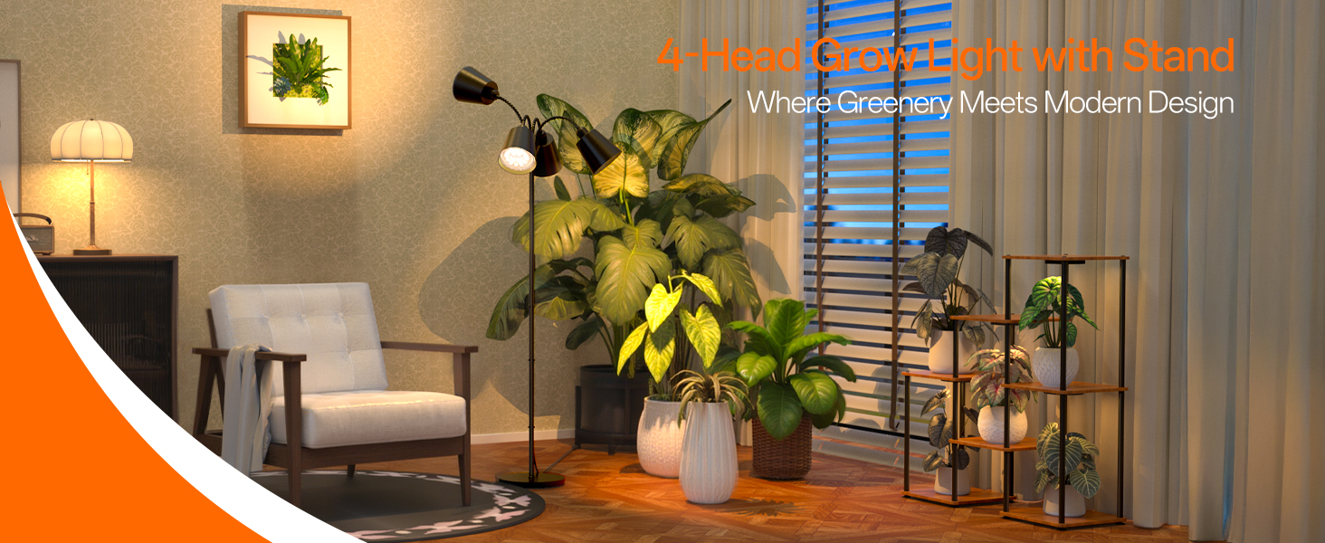 Eliminate uneven plant growth with our comprehensive four-head lighting system designed for complete canopy coverage. Each full-spectrum LED delivers balanced PAR distribution across your entire plant collection, from dense foliage clusters to strategically spaced succulents. The independent bulb heads rotate and position effortlessly, ensuring every plant receives optimal light intensity for uniform, healthy development without dark spots or stretching.