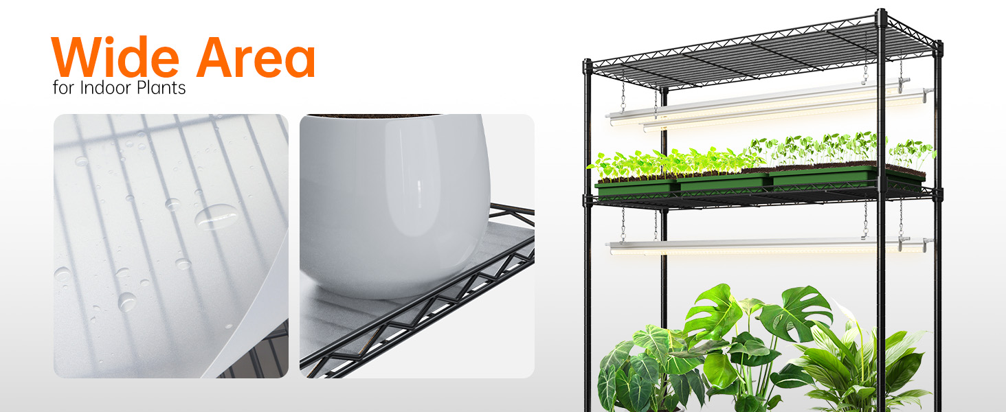 Maintain a tidy growing environment with four included PP pads that prevent water damage during watering sessions. The thoughtful design provides ample display space while keeping your plants organized and protected. Whether growing succulents, aloe vera, or flowering plants, this system combines practical functionality with an aesthetically pleasing presentation for your indoor garden.