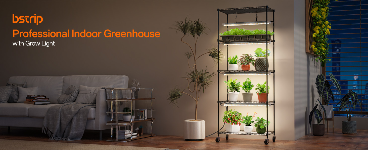 This 59-inch tall plant stand features five adjustable shelves (13.8"x23.5" each) accommodating 2 seedling pots, 8 small plants, or 3 medium plants per tier. Perfect for organizing seedlings, tropical plants, succulents, and flowering varieties.