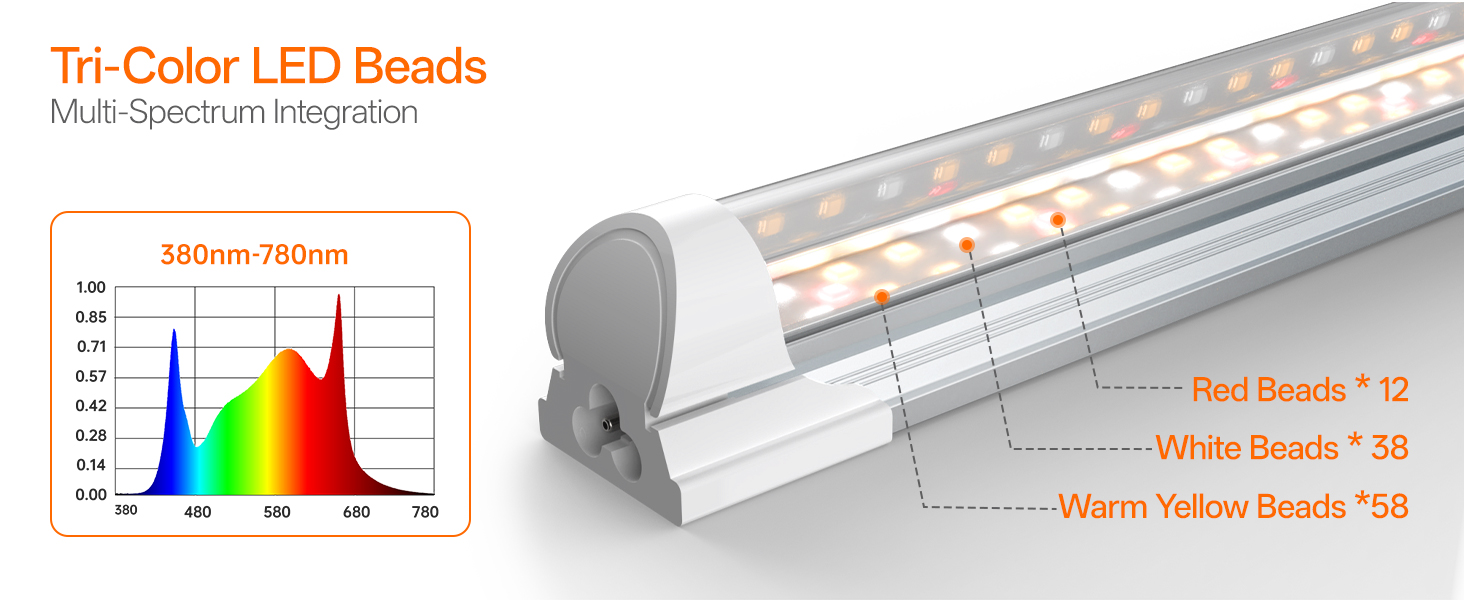 Four 23.6-inch T8 LED grow light bars deliver full spectrum illumination enhanced with 660nm red wavelengths to accelerate photosynthesis. This energy-efficient 24W-per-bar system provides optimal light for all growth stages, from delicate seedling development to mature plant growth, making it ideal for dark corners or winter months when natural sunlight is limited.