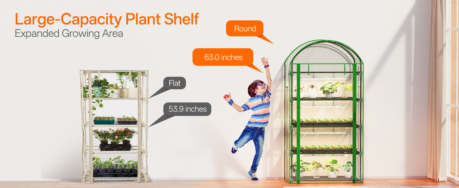 Maximize your growing potential with our intelligently designed 4-tier greenhouse that stands 63" tall while occupying just 35"x19.3" of floor space. Each level accommodates standard 9x12-cell seed trays alongside additional planters, creating a high-density growing station perfect for urban apartments, cozy living corners, or dedicated plant rooms. This vertical design transforms limited areas into productive growing zones.