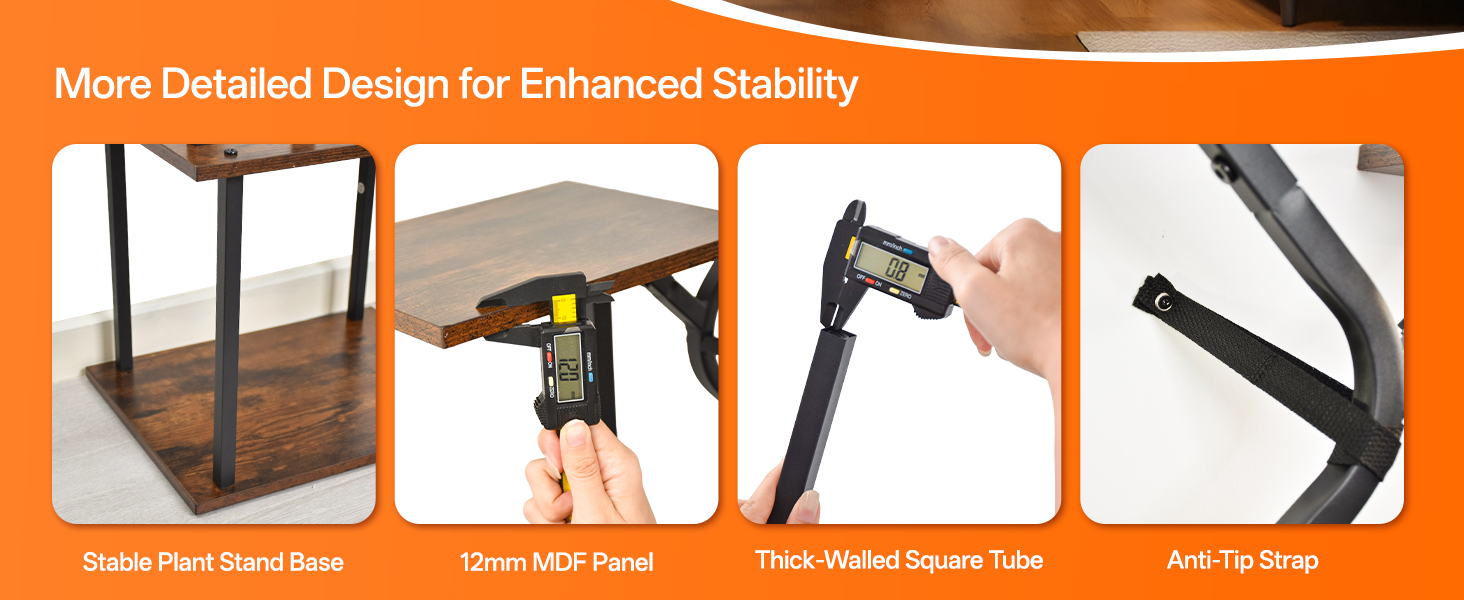 Experience unparalleled durability with our heavy-duty 0.8mm thick iron pipes and premium 12mm MDF panels engineered to resist warping and moisture. The integrated anti-tip straps ensure complete structural security, allowing you to confidently display your entire plant collection without stability concerns. This robust construction guarantees years of reliable performance while maintaining its elegant appearance.