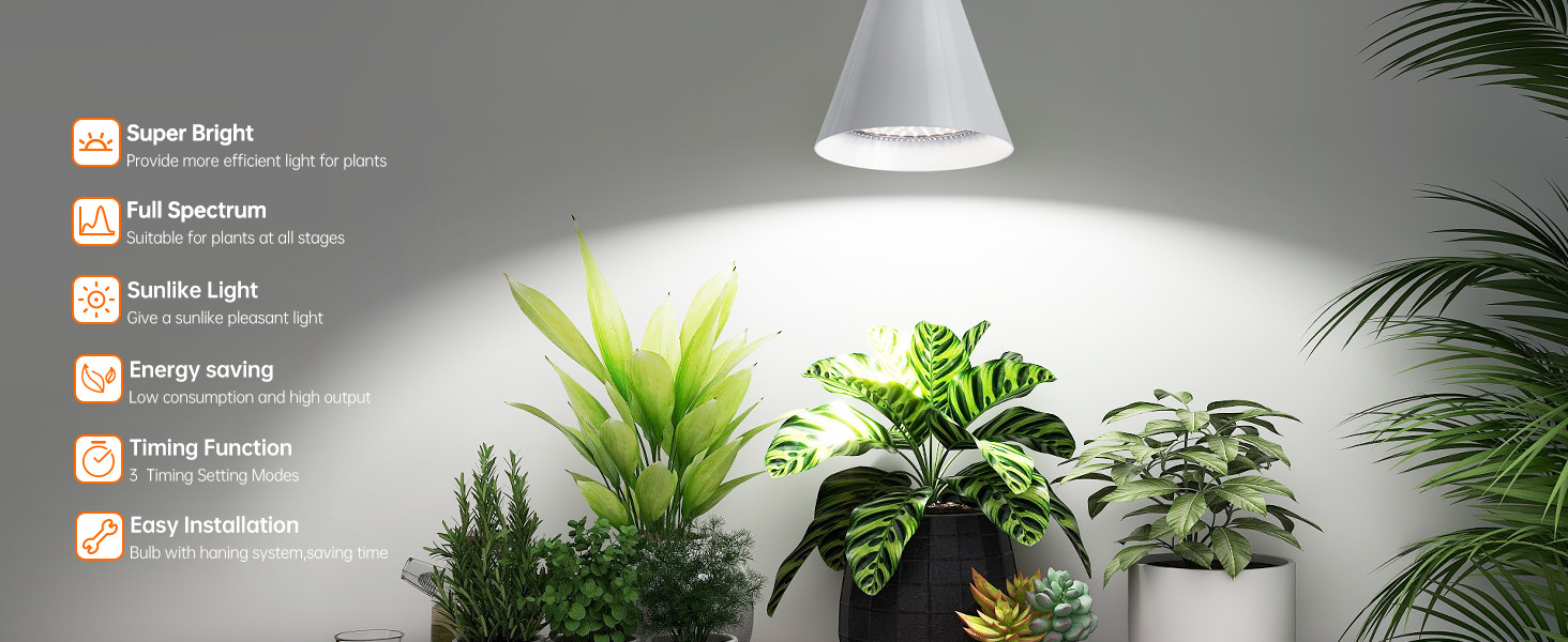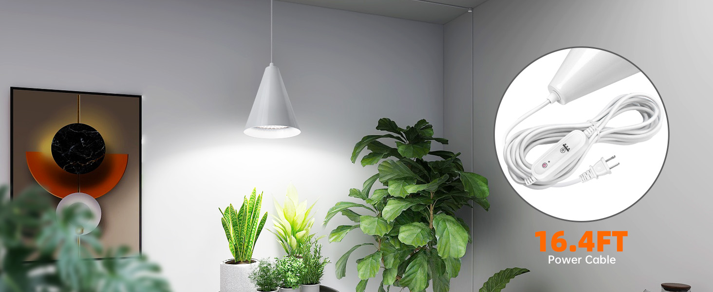 Includes 2 ceiling clips and an extra-long 16.4-foot power cord for versatile hanging options. Easily adjust the hanging height to accommodate different plant sizes and room layouts with simple setup.