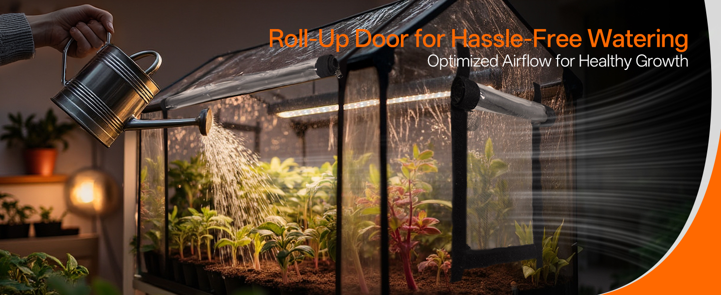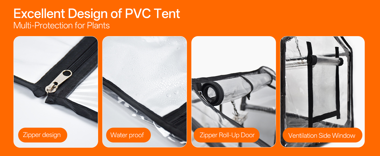 Promote vigorous plant growth with the intelligent ventilation system featuring dual side windows and a zipper roll-up door that work together to ensure proper air circulation. The durable PVC cover maintains ideal growing conditions while allowing necessary gas exchange. This balanced approach to ventilation prevents moisture buildup and promotes stronger, healthier plant development in the controlled environment.