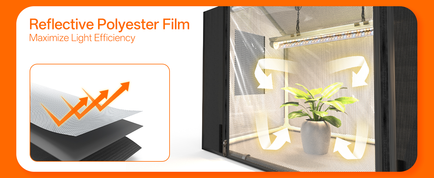 Experience accelerated plant growth with the 18W full-spectrum LED grow light featuring 660nm red wavelength for enhanced photosynthesis. The interior reflective polyester film maximizes light efficiency by distributing illumination evenly throughout the tent. This advanced lighting system promotes lush foliage development and accelerated flowering, providing professional results in a compact design.