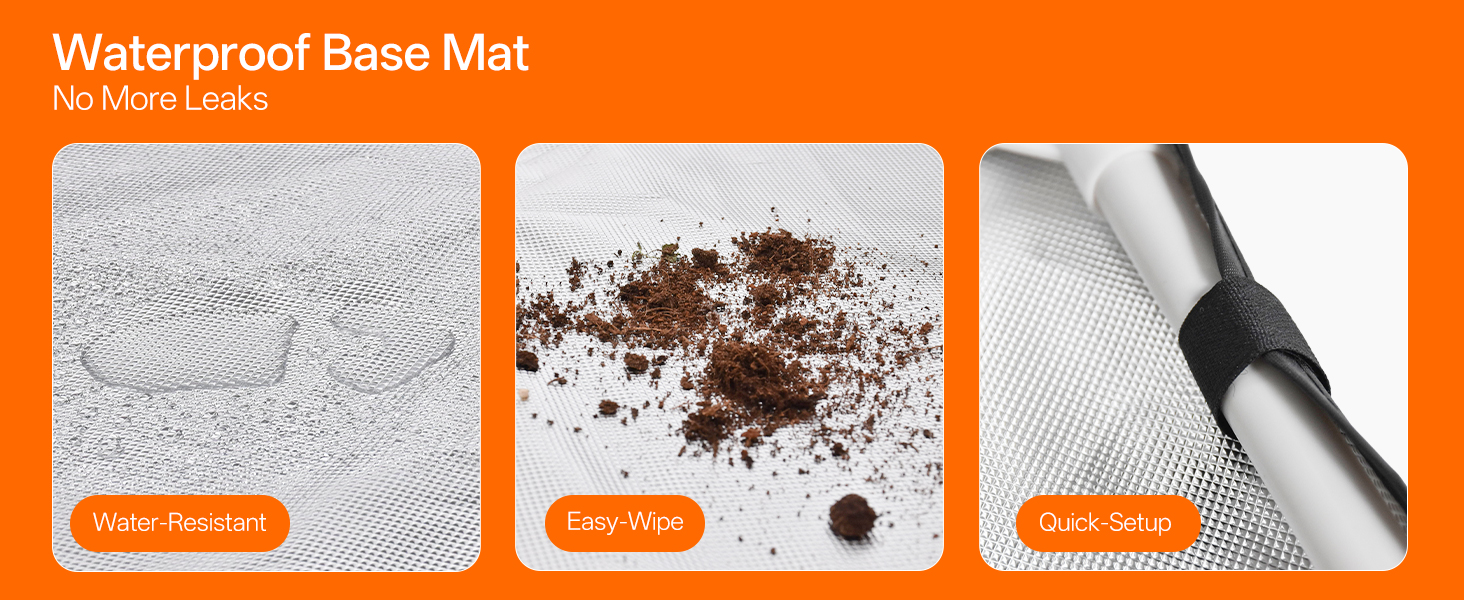 Enjoy hassle-free gardening with the smart timer offering 4/9/14-hour automatic lighting cycles and tool-free assembly that takes just minutes. The included waterproof base mat protects your surfaces while making cleanup effortless. This all-in-one solution is perfect for beginners and experienced gardeners alike, combining smart technology with user-friendly design for successful indoor cultivation.