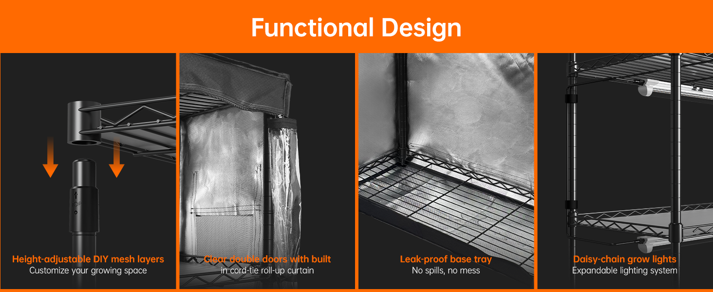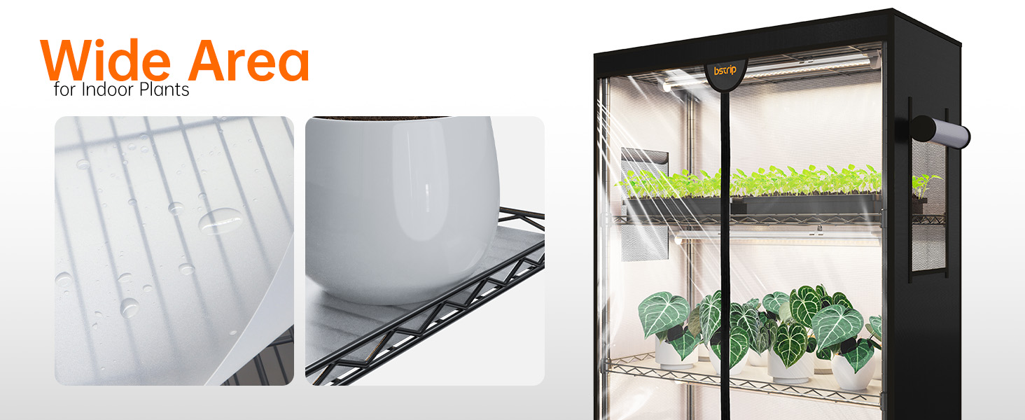 Enjoy hassle-free setup with tool-free assembly that gets your greenhouse operational in minutes. The included five waterproof PP mats protect your lights and shelves from water damage during watering, while the comprehensive package includes four grow lights, metal shelves, connectors, and all necessary accessories for immediate use by gardeners of all experience levels.