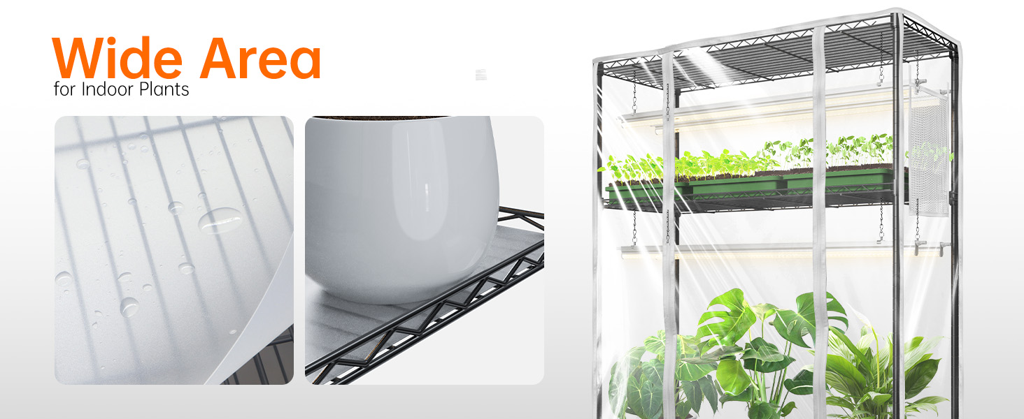 Rearrange your growing space effortlessly with four industrial wheels (two with locking mechanisms) that provide smooth mobility and secure placement. The tool-free assembly design makes setup quick and straightforward, while the rust-resistant construction ensures long-lasting durability. This combination of convenience and stability makes it easy to optimize your plant's position for seasonal changes or space reconfiguration.