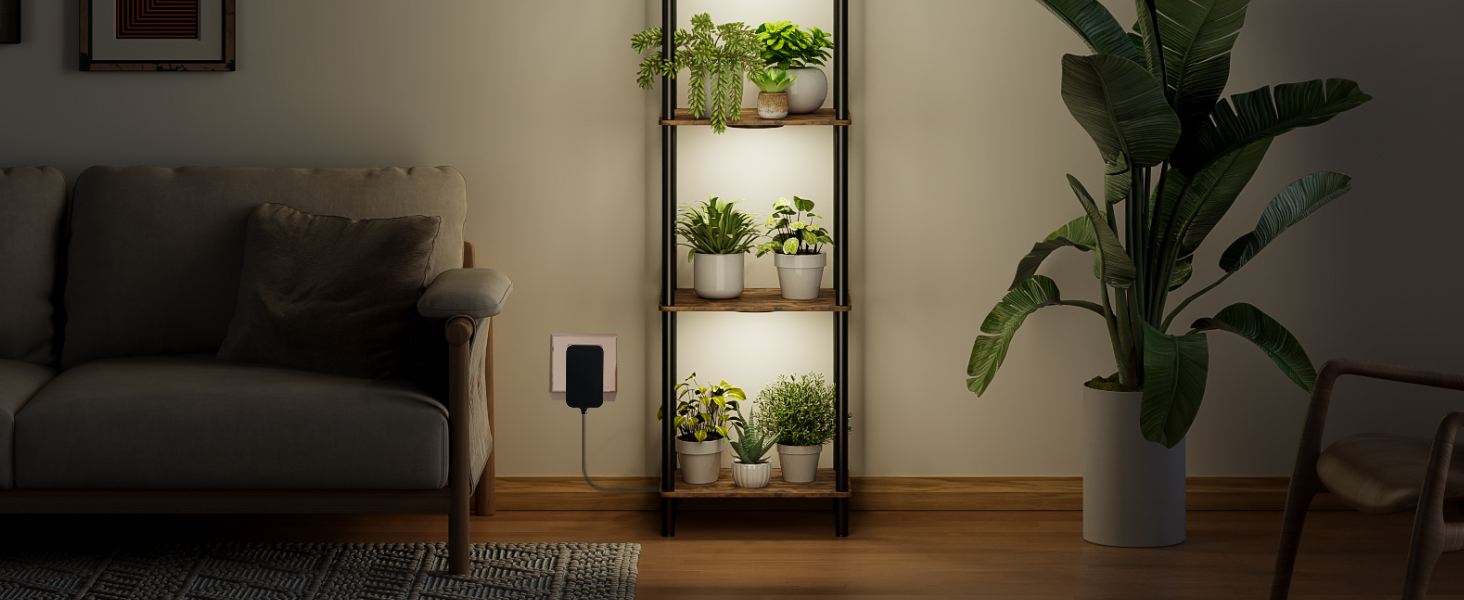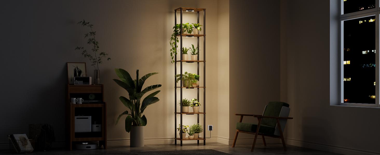 Nourish your plants with five full-spectrum LED grow lights that replicate natural sunlight conditions. The advanced lighting system offers adjustable brightness levels and three specialized modes to support various plant types through all growth stages. Combined with the stylish plant stand, these lights create an optimal growing environment while adding a warm, artistic ambiance that enhances your living space with both functionality and decorative appeal.