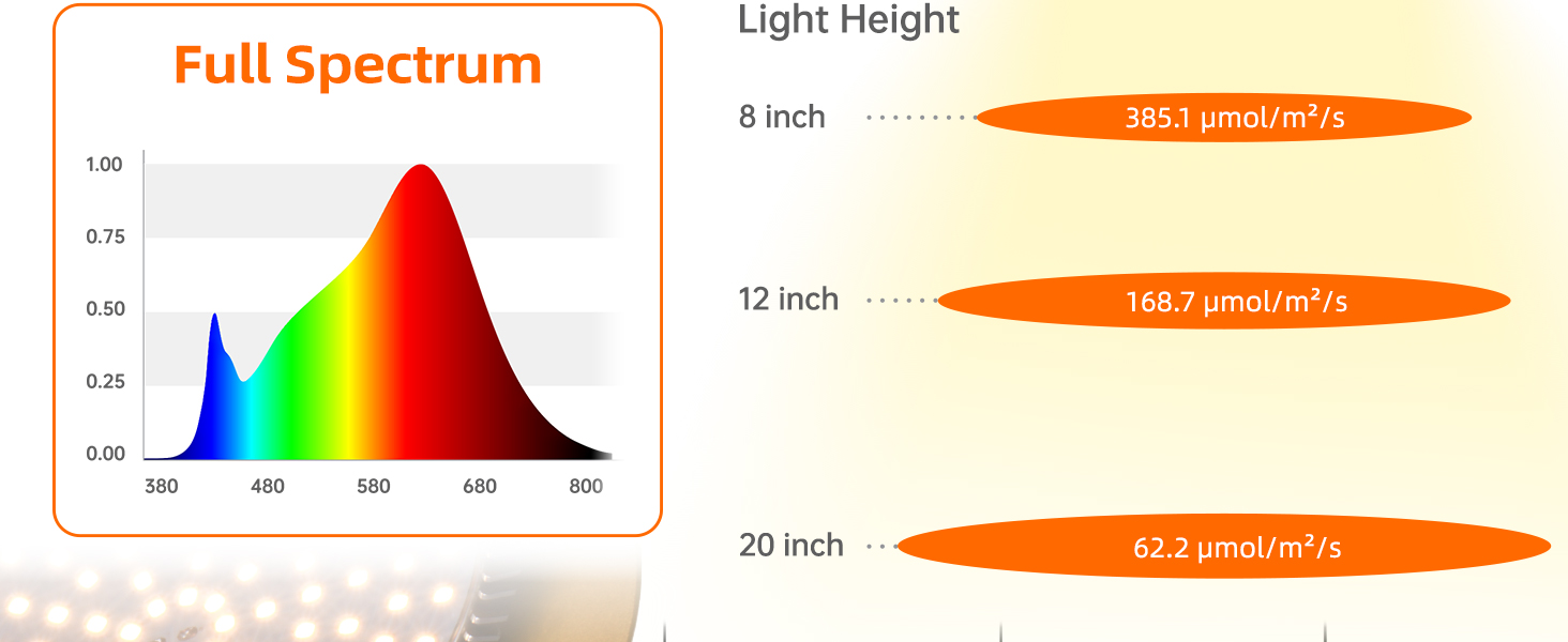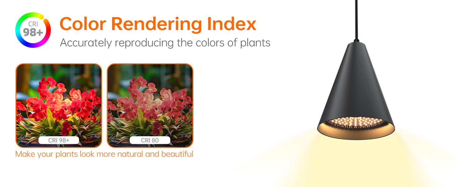 Customize your growing setup with the complete hanging system. The included 16.4-foot power cord and two ceiling clips allow easy adjustment of hanging height to suit different plant sizes. Whether you're growing tall flowers or compact herbs, you can easily position the light at the ideal distance for maximum coverage and growth efficiency.