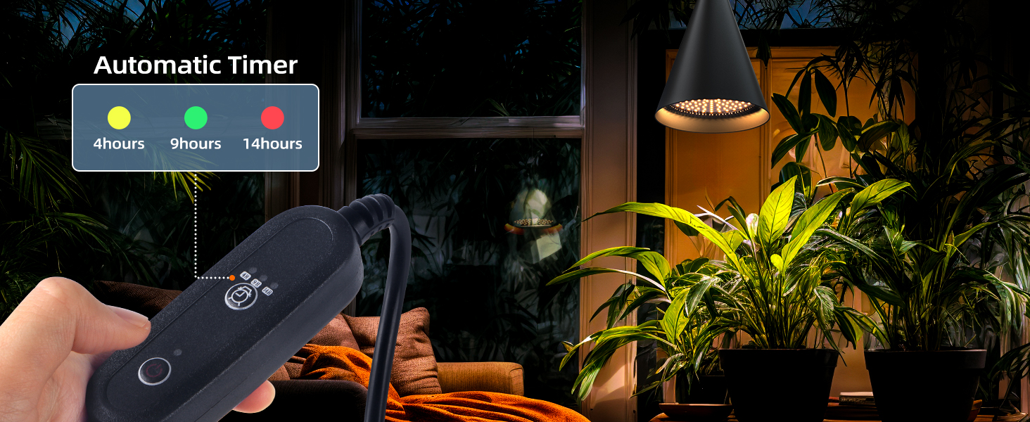 Maintain perfect light cycles effortlessly with the programmable timer. Set your preferred duration (4, 9, or 14 hours) and the light will automatically turn on and off at the same time daily. This smart feature ensures your plants receive consistent care when you're vacationing or busy with work, providing peace of mind and optimal growing conditions.