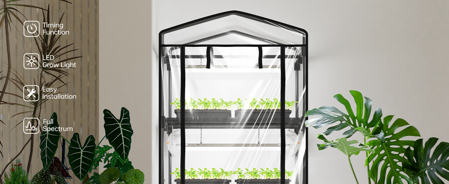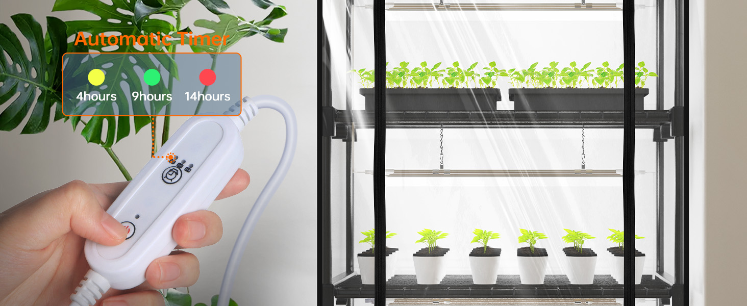 Simplify plant maintenance with the convenient timer function offering 4, 9, and 14-hour automatic lighting cycles. This smart feature ensures your plants receive consistent care during vacations or busy work periods, eliminating the need for manual operation. The automated system maintains perfect light schedules year-round, providing peace of mind and reliable growing conditions for your plants.
